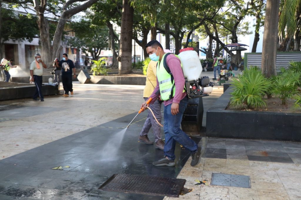 Informó que la desinfección de los espacios ya forma parte de una rutina para la Coordinación de Servicios Públicos, interviniendo mercados, parques, sitios de taxis, terminales de autobuses y puntos estratégicos de la ciudad para evitar la proliferación del virus.