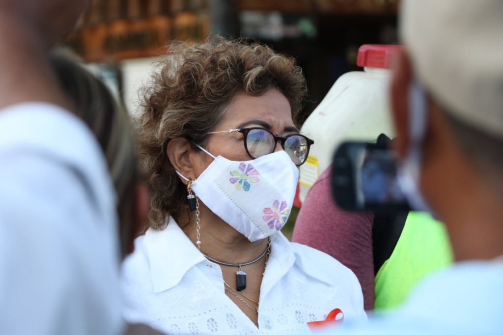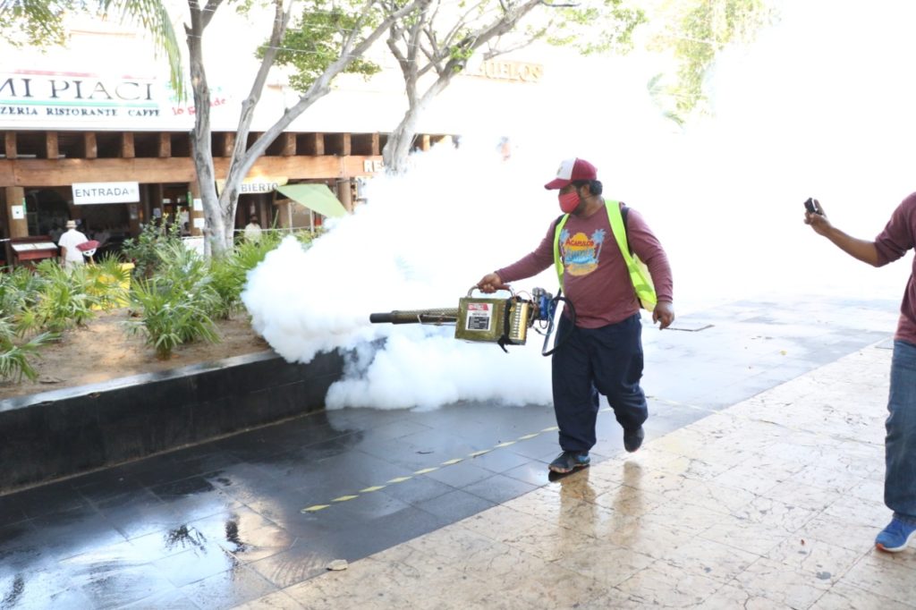Acompañada por el coordinador de Servicios Públicos Municipales, Juan Carlos Manrique García y directores operativos de la dependencia, la alcaldesa constató las tareas de fumigación y desinfección que se realiza en elementos urbanos como bancas, áreas verdes y jardineras que conforman “el corazón de Acapulco”; a su vez, instruyó una atención más esmerada en la zona para ofrecer una mejor imagen.