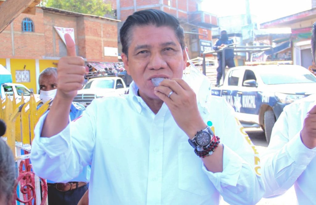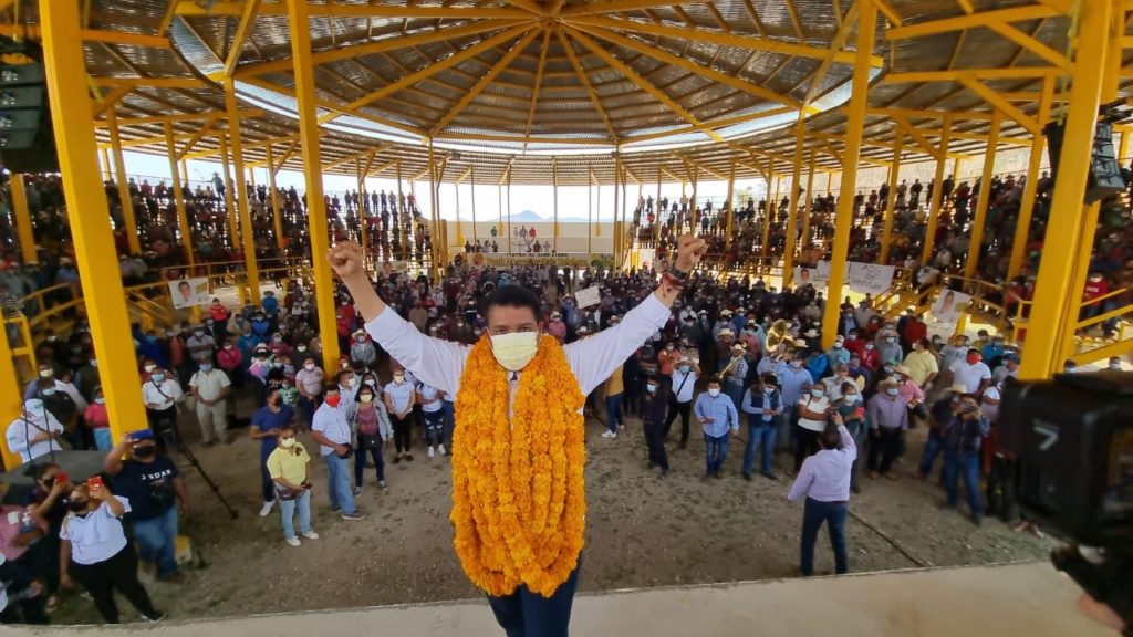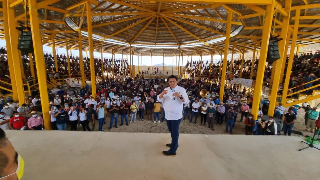Atlixtac, Gro., 21 de marzo del 2021.- El candidato a gobernador de la alianza “Va por Guerrero”, integrada por el PRI-PRD, Mario Moreno Arcos, anunció que su gobierno generará condiciones para que sus hermanas y hermanos indígenas de la región Montaña ya no migren a estados del norte del país en busca de trabajo, como jornaleros agrícolas.