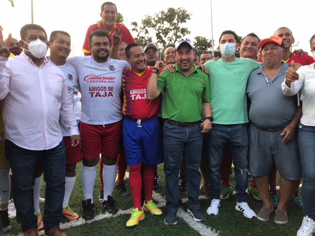 Acapulco, Gro.- 7 de Mayo del 2021. Luego de sostener un encuentro deportivo en la colonia Emiliano Zapata, el candidato de la alianza PRI-PRD a la alcaldía de Acapulco, Ricardo Taja Ramírez, se comprometió a que una vez llegando a la presidencia municipal fortalecerá e impulsará el deporte.