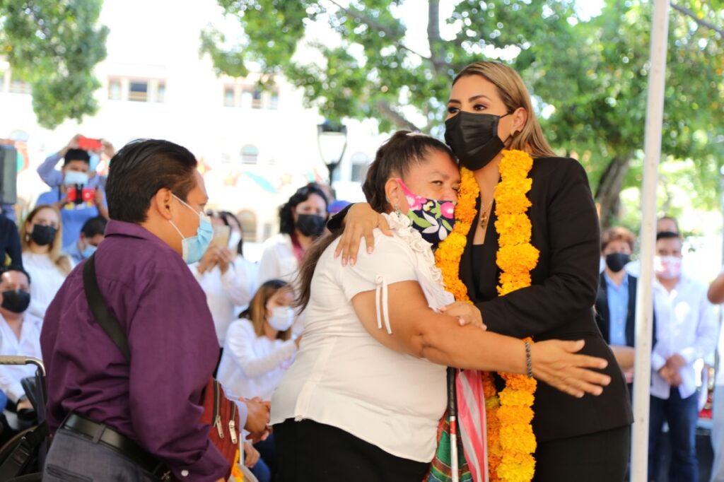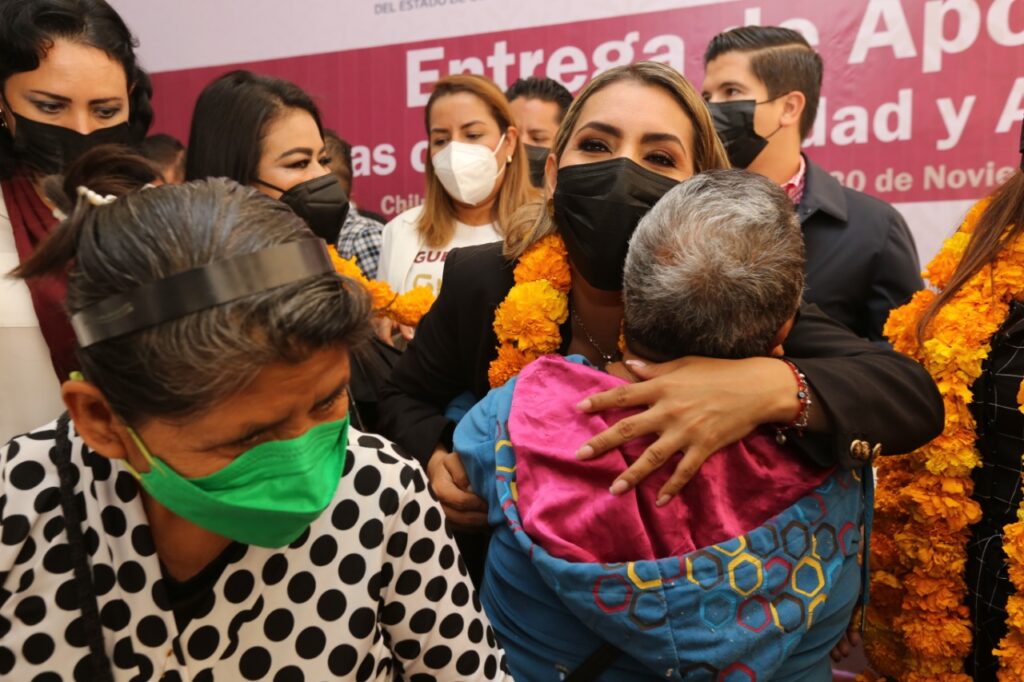 Chilpancingo, Gro. 30 de noviembre de 2021.- De manera directa y sin intermediarios, la gobernadora Evelyn Salgado Pineda encabezó la entrega de apoyos a personas discapacitadas y adultos mayores en el zócalo de la capital del estado, donde señaló que reforzará y complementará los programas sociales para que la Cuarta Transformación llegue hasta el último rincón de Guerrero en una agenda social profunda y de transformación donde primero sean los pobres que no se volteaban a ver.