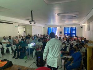 Esta capacitación se llevo a cabo en el Hospital General de Taxco “Adolfo Prieto”; donde se abordaron los temas de hemorragia obstétrica, estados hipertensivos del embarazo, triage obstétrico, código mater, control prenatal centrado en la paciente, NOM 007 para atención de la mujer durante el embarazo, parto, puerperio y del recién nacido, talleres basados en habilidades y destrezas de pinzamiento de arterias uterinas y balón hidrostático endouterino.