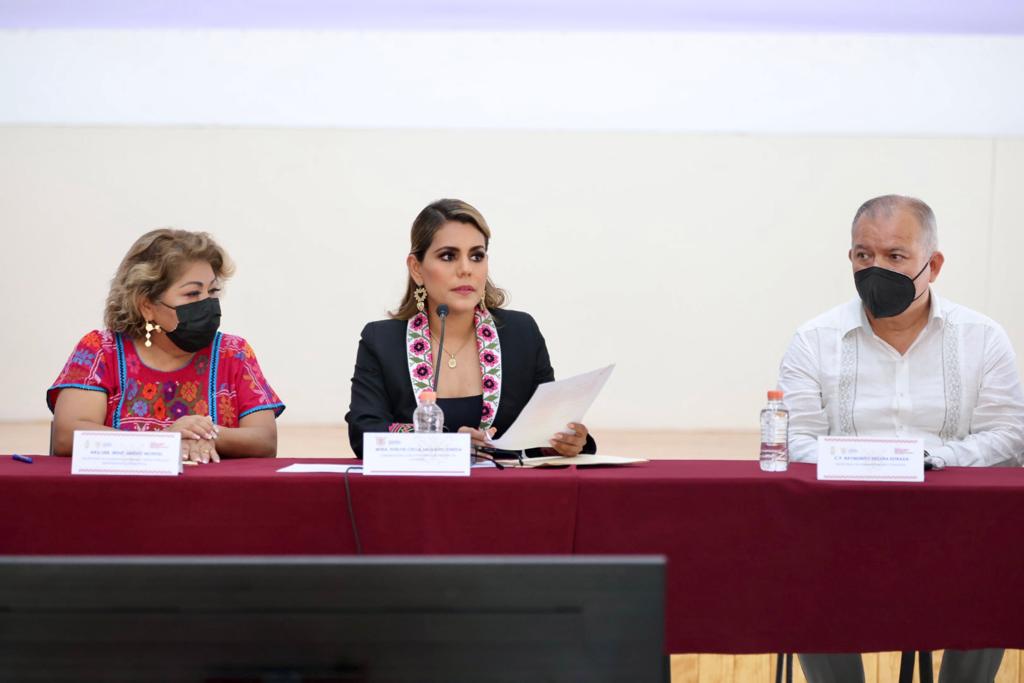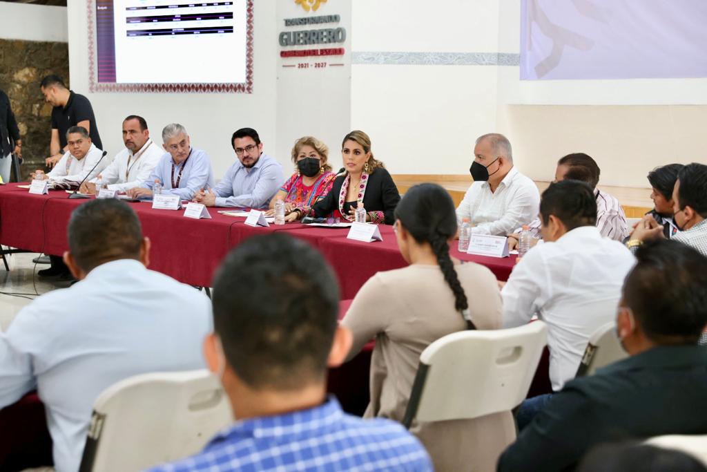 Chilpancingo, Gro., 27 de mayo del 2022. – La Gobernadora Evelyn Salgado Pineda encabezó una mesa de trabajo con autoridades municipales de los 23 municipios beneficiados con el Programa de Mejora de Conectividad Municipal a través de la Pavimentación de Caminos Rurales y Alimentadores de la región Montaña y parte de la Costa Chica, para dar seguimiento a las obras de infraestructura que representan para Guerrero una inversión federal sin precedentes de mil 84 millones de pesos para este año.