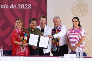 Tlapa, Gro., 24 de junio del 2022. – “Tenemos al mejor presidente que ha tenido México, un presidente de territorio y no de escritorio”, afirmó la gobernadora Evelyn Salgado Pineda al atestiguar la firma de convenio entre el presidente Andrés Manuel López Obrador y la Fundación Teletón México, para la construcción del Centro de Rehabilitación e Inclusión de La Montaña, que tendrá una inversión de 38.2 millones de pesos, en beneficio de mil 850 familias que habitan en una de las regiones con mayor pobreza del país.