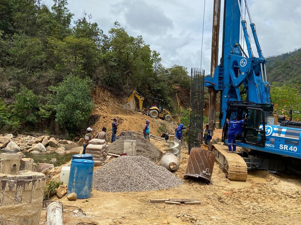 Chilpancingo, Gro., 27 de junio del 2022.- Como parte de las obras y acciones que lleva a cabo el gobierno del estado para mejorar las condiciones de vida de los habitantes de la región de la Montaña, con una inversión de 14 millones 567 mil 337 pesos, se construye el puente vehicular Río Víbora en el municipio de Cochoapa el Grande.