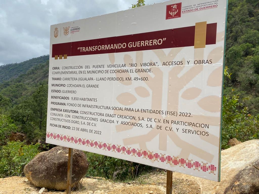 El director general de la Comisión de Infraestructura Carretera y Aeroportuaria del Estado de Guerrero, Miguel Ángel Ríos Soberanis, informó que el puente que se localiza en la comunidad de Llano Perdido, tendrá una longitud de 55.05 metros y beneficiará a casi 10 mil habitantes de la zona.