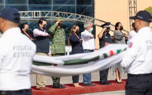 Chilpancingo, Gro., 19 de septiembre del 2022. – La gobernadora Evelyn Salgado Pineda, izó la Bandera Nacional a media asta en el Recinto Oficial del Poder Ejecutivo, ahora “Casa del Pueblo”, para honrar la memoria de las víctimas que perdieron la vida por el terremoto de 1985 y el sismo del 2017, al tiempo de reafirmar su compromiso institucional con la prevención, la protección civil y hacer todo lo posible para disminuir el impacto de los desastres naturales.