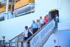 La mayoría de los cruceristas descendieron con la armoniosa música de la banda musical y bailes regionales.