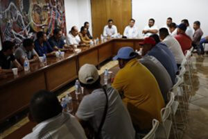 Chilpancingo, Gro., 13 de marzo de 2023.- Con el objetivo de dar seguimiento a los trabajos de pacificación de la región de Costa Grande, el Director General de Gobernación, Francisco Rodríguez Cisneros, se reunió con integrantes del Comité de Seguridad de la ruta Tecpan El Balcón – Fresnos de Puerto Rico, representada por José Luis Cásares Leyva; el presidente de la ruta Tecpan “El Pará” – Piedras Grandes, Pablo Radilla Mata y el Presidente de la Ruta Atoyac – Pie de la Cuesta, Refugio Castro Ortiz.