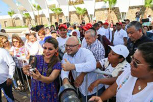 La gobernadora acompañada por la diputada local Estrella de la Paz Bernal y el representante del sector hotelero Óscar Michaus, develó la placa conmemorativa de inauguración de la obra integral que le cambió el rostro a esta plaza y acceso de playa.