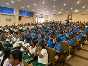 Acapulco, Gro., 19 de abril del 2023.- Alrededor de 200 estudiantes de nivel primaria de escuelas públicas del municipio de Acapulco, participaron este miércoles en el concierto didáctico que realizó la Orquesta Filarmónica de Acapulco (OFA) en coordinación con las Secretarías de Cultura y de Educación Guerrero para atender el desarrollo integral de la niñez a través del arte y la cultura como una prioridad del gobierno que encabeza Evelyn Salgado Pineda.