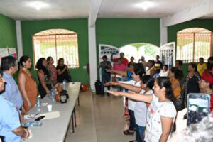 En su mensaje, la funcionaria expresó que “está es la primera comunidad en la que iniciamos un proceso de capacitación, de los 25 talleres que, se llevarán a cabo a nivel comunitario, municipal y regional, los cuales llegarán a 16 municipios culminando con un taller estatal.