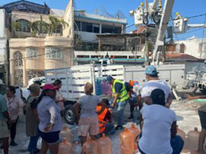 En el trabajo constante de las actividades de limpieza tras el paso del Huracán “Otis”, en el fraccionamiento Las Playas de Acapulco, por instrucciones de la gobernadora Evelyn Salgado Pineda, se distribuyeron garrafones de agua purificada para atender a familias damnificadas, personal del secretariado Ejecutivo del Sistema Estatal de Seguridad Pública, integró brigadas de limpieza para mejorar paulatinamente la imagen del puerto.