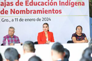 Junto con el secretario de Educación Guerrero, Marcial Rodríguez Saldaña, la gobernadora entregó nombramientos simbólicos a maestras y maestros de los municipios de Malinaltepec, Cochoapa el Grande, San Luis Acatlán, Copanatoyac, Tlapa, Zapotitlán Tablas, Atlamajalcingo del Monte, Xochistlahuaca, Tlacoapa, Zitlala, Olinalá, Iliatenco, Atlixtac, Iguala, Ayutla, Quechultenango y Eduardo Neri.