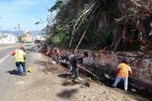 Adicionalmente y derivado de la situación generada por el huracán Otis, se mantiene la atención con acciones de limpieza en cunetas, retiro de basura, ramas y árboles caídos, desechos producto de azolve, así como rocas. En este esfuerzo conjunto, hasta el momento se han recolectado 2 mil 026 toneladas de basura y desechos, mil 388 toneladas de azolve y un total de 70 Metros cúbicos de piedra.
