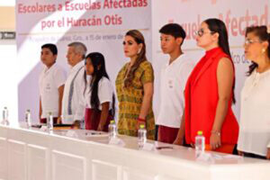 “El huracán tal vez les quitó sus libros, sus uniformes, algunas cosas que se requieren para estar estudiando, pero no les quitó sus sueños, no les quitó sus ganas de seguir estudiando, de seguir preparándose y a nosotros para nada nos quitó la esperanza, para nada nos quitaron las ganas de seguir trabajando por Acapulco. El huracán no se llevó eso, eso está intacto, nuestra voluntad, nuestras ganas, nuestro trabajo, nuestra esperanza y nuestra fe está intacta, eso no lo movió ni un centímetro el huracán”, señaló la mandataria.