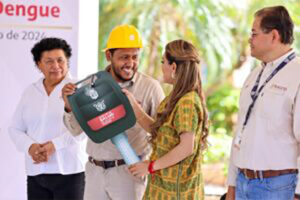 En la explanada de las instalaciones de la Promotora Turística de Guerrero (Protur), la mandataria estatal destacó el trabajo coordinado que han encabezado las autoridades de Salud y todo el personal que labora en la prevención del contagio del dengue. Dijo que este reforzamiento es en beneficio de la población, por lo que pidió la colaboración de la ciudadanía para permitir que el personal de esta dependencia pueda ingresar a los domicilios para llevar a cabo las tareas de prevención, combate y fumigación del mosco transmisor.