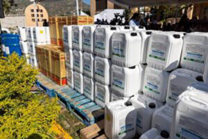 Como parte de este acto se hizo entrega de 7 camionetas, maquinaria diversa, motomochilas, insecticida, así como insumos diversos y uniformes para el personal de Vectores.