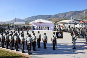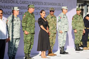 En la ceremonia celebrada en la Comandancia de la Guardia Nacional en Petaquillas, el Comandante de la Novena Región Militar, Enrique Martínez López tomó protesta al nuevo mando como comandante de la Novena Brigada de la Policía Militar.