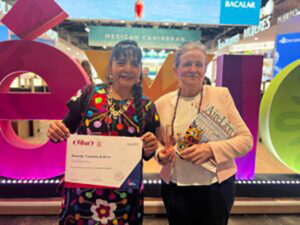 La maestra mezcalera y cocinera tradicional, Patricia Acevedo Pacheco recibió el premio que acredita a su ruta mezcalera como uno de los 4 mejores productos turísticos a nivel mundial, por su operación y políticas de inclusión que empoderan a las mujeres y generan desarrollo comunitario.