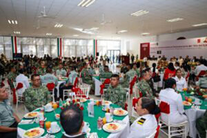 Por su parte, el comandante de la Novena Región Militar, Enrique Martínez López, señaló que las fuerzas armadas se han caracterizado por ser un sólido baluarte de las instituciones, defendiendo la democracia y reivindicando las causas sociales, enarbolando la bandera de la legalidad, la libertad, la igualdad, con el firme compromiso de servir al pueblo de México.
