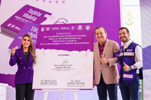 En este evento, la gobernadora Evelyn Salgado firmó un convenio de colaboración con el rector de la Universidad Autónoma de Guerrero, Javier Saldaña Almazán, para implementar acciones conjuntas que fortalezcan el desarrollo del Protocolo Violeta en la máxima casa de estudios y difundir los componentes del programa entre la comunidad universitaria.