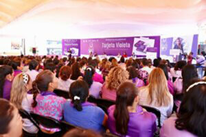 A través de la Tarjeta Violeta que busca ser un catalizador de cambio, se entregará a las beneficiarias un apoyo económico de 2 mil pesos bimestrales, mujeres de 18 a 64 años y 11 meses, jefas de familia en situación vulnerable o residentes de los Centros de Apoyo Interdisciplinario a Víctimas de Violencia (CAIV), quienes además podrán continuar con sus estudios, recibir cursos de capacitación en diversos oficios y habilidades y seguimiento médico y psicológico.