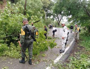 SSP Guerrero, Sedena y GN retiran árboles caídos y piedras que obstruyen carreteras estatales