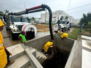Por lo que se realizó el desazolve de la planta de tratamiento de aguas residuales del hospital El Quemado y el desazolve de drenaje sanitario y pluvial en varios puntos de la zona Diamante, como la entrada de la colonia Colosio y el fraccionamiento Joyas del Palmar (Casas Ara), donde se trabaja con equipo de bombeo por la dimensión de la inundación.