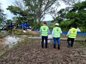 Junto con el presidente municipal de Tixtla, Alberto Michi Campos y personal de la CONAGUA México, el titular de la CAPASEG supervisó el funcionamiento de las bombas, de 8 pulgadas, instaladas en el arroyo Cuicuilpan, en el lado sur de la localidad, constatando que se están desfogando 650 litros por segundo con los tres equipos que se encuentran operando de manera adecuada y continúa las 24 horas.