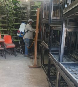 Sin embargo, se realizó la fumigación del inmueble y el rociado residual en las 2 aulas, además, se trabajaron 25 áreas, entre salones de clase, talleres y oficinas administrativas.