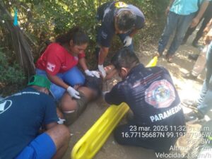 Acapulco, Gro., 23 de marzo de 2025. – Personal de la Secretaría de Gestión Integral de Riesgos y Protección Civil de Guerrero atendió un accidente de motocicleta en la carretera Acapulco-Pinotepa, a la altura de la localidad de El Porvenir, municipio de Florencio Villarreal, donde una mujer originaria de Acapulco resultó lesionada y fue trasladada al hospital IMSS Bienestar de San Marcos para recibir atención médica.