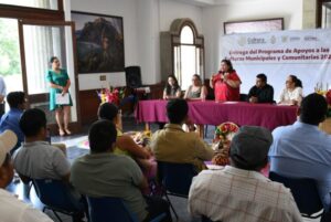 Durante la entrega, las y los beneficiarios recibieron la orientación sobre la elaboración de informes trimestrales a través de una capacitación; además, se integró el Comité de Contraloría Social, así como la entrega simbólica de apoyos.