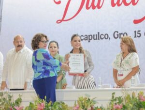 En el evento que reunió a docentes de las diferentes regiones de la entidad, la gobernadora del estado dijo que hay un gran respaldo al magisterio guerrerense a través de diversas acciones que se materializan en apoyos, honrando la trayectoria y su participación en la construcción de un estado y un país en mejores condiciones.