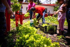 En la jornada de cosecha participaron niñas y niños, quienes aprendieron sobre el proceso de producción de alimentos libres de químicos, fomentando así, desde temprana edad, el respeto por la tierra, la agricultura familiar y el cuidado del entorno.