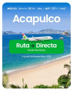“La nueva ruta aérea entre Acapulco y Monterrey es un paso importante para fortalecer la conectividad aérea y fomentar el turismo en Guerrero. Se espera que esta conexión genere beneficios para la industria hotelera, restaurantera y de servicios turísticos en general”, puntualizó.