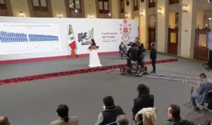 Durante la conferencia matutina, la presidenta Sheinbaum presentó dos gráficas que muestran la mejora en el ingreso corriente promedio trimestral por hogar y la reducción del porcentaje de población en situación de pobreza entre 2022 y 2024.